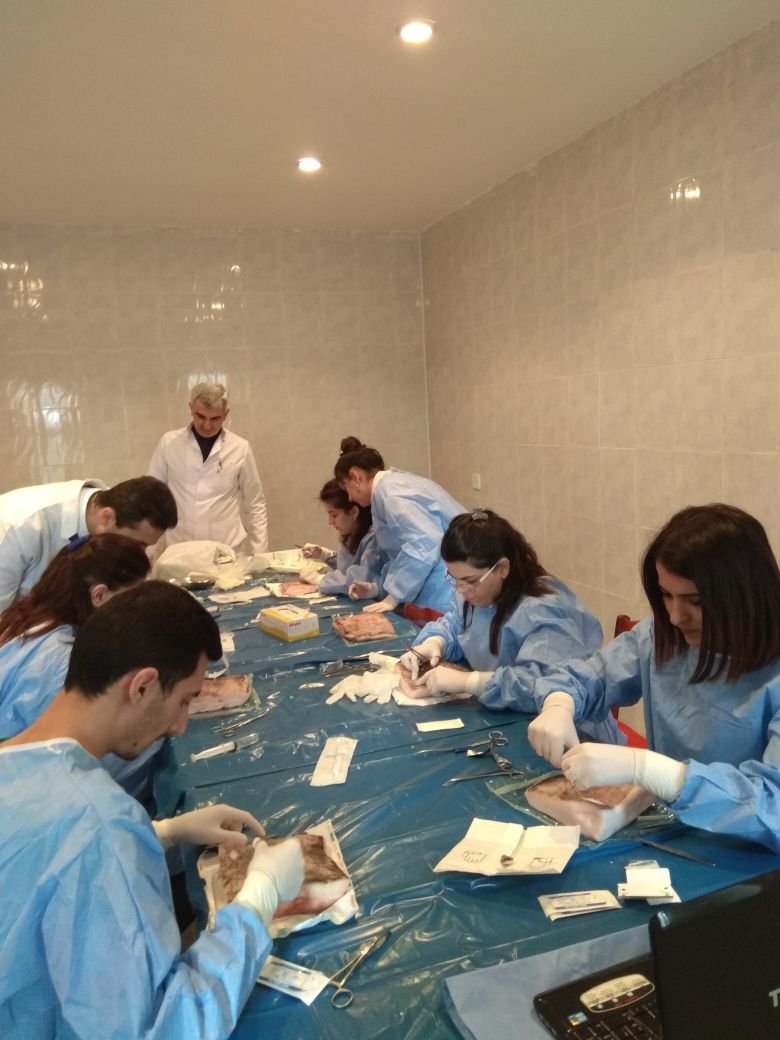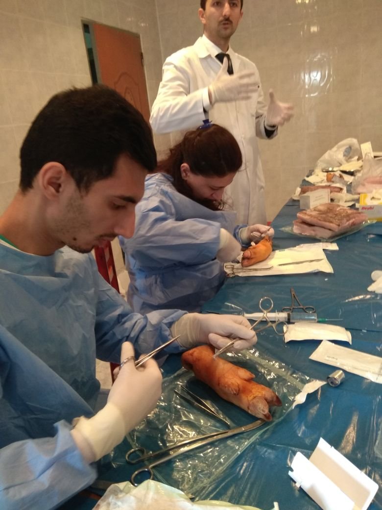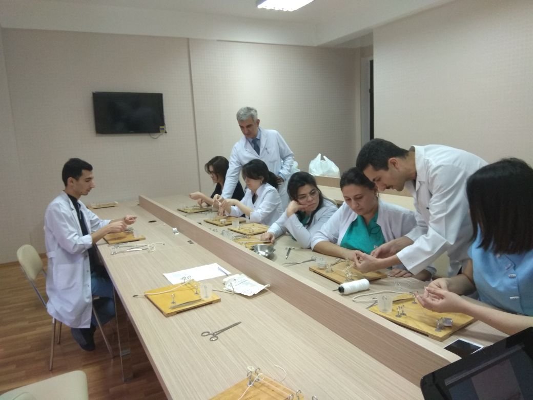 Tibb Universitetinin Tədris Cərrahiyyə klinikası və Elmi Tədqiqat Mərkəzində cərrahiyyə ixtisası üzrə rezidentlər üçün növbəti “Təməl Cərrahi Və Laparoskopik bacarıqlar” kursumuz başlamışdır. Kursumuz 3 hissədən ibarətdir: I hissə - əllərin yuyulması, əlcəklərin geyinilməsi, cərrahi alətlərlərlə işləmək, cərrahi düyünlərin bağlanma qaydaları, yaş dəri üzərində kosmetik və adi tikişlərin qoyulması, ateromanın xaric edilməsi, absesin açılması və drenajı, dəri törəməsinin kəsilib götürülməsi, kəsilmiş vətərin plastikası və s.