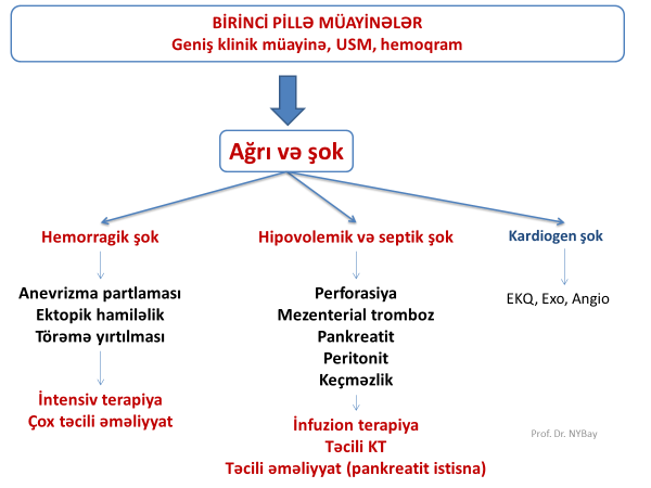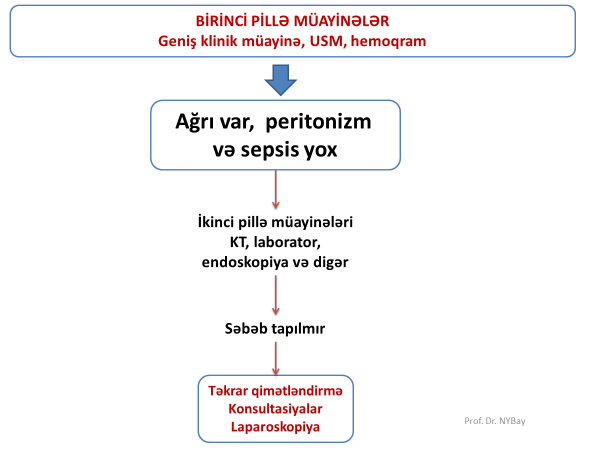 Qarın müayinəsində səbəbi aşkarlana bilməyən güclü qarın ağrısı varsa ilk növbədə nə etmək lazımdır?