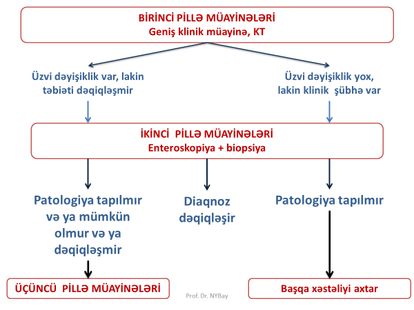 Diaqnostikada kontrastlı RH-qrafiya, USM, kontrastlı KT, FDS mühüm rol oynayır.