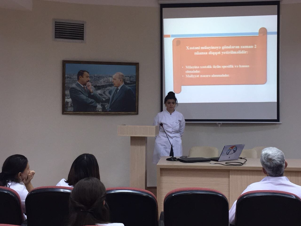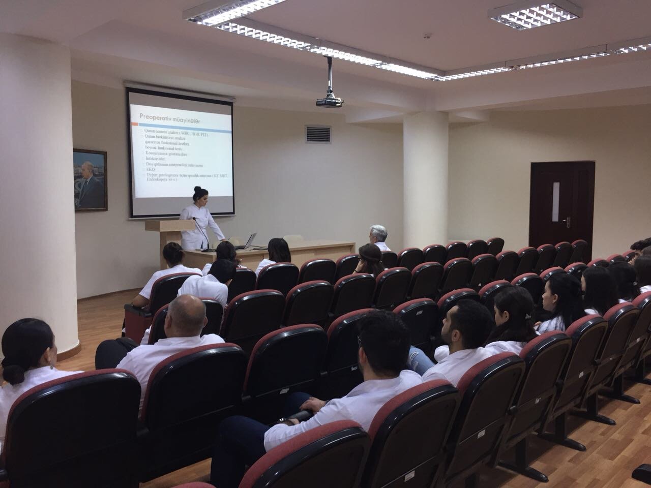 Azərbaycan Tibb Universitetinin I cərrahi xəstəliklər kafedrasının ümumi cərrahiyyə ixtisasi üzrə V kurs rezidenti Mürvələdova Nərmin 18.10.2017-ci il tarixində "Əməliyyatönü müayinələr" seminar mövzusu ilə çıxış etmişdir. Çıxış zamanı əməliyyatönü müayinələrin aparılma qaydası, müxtəlif patologiyalarda spesifik müayinənin seçilməsi, sonuncunun differensial diaqnostikada rolu haqqında danışıldı. Mövzu ətrafında rezidentlər geniş müzakirələr apardı.