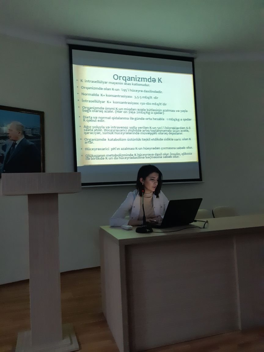 21.02.2018 tarixində I Cərrahi xəstəliklər kafedrasının II kurs rezidenti Ağakişiyeva Həcərin “Elektrolit – Na , K mübadiləsi” mövzusunda seminar çıxışı oldu. Çıxışda Cərrahi xəstəliklər kafedrasının rezidentləri ilə yanaşı digər kafedraların rezidentləri , tələbə və müəllimlər də iştirak etdi. Seminarda hiper-, və hiponatremiya , hiper-, və hipokalemiyanın yaranma səbəbləri, diaqnostikası, elektrolit itkisinin hesablanması, klinik mənzərəsi və müalicə taktikası barəsində danışıldı. Həmçinin preoperativ və postoperativ dövdə elektrolit mübadiləsinin patalogiyaları və elektrolit itkisinin bərpası barəsində geniş müzakirə aparıldı. Mövzu ilə bağlı rezident və tələbələrin sualları cavablandırıldı.